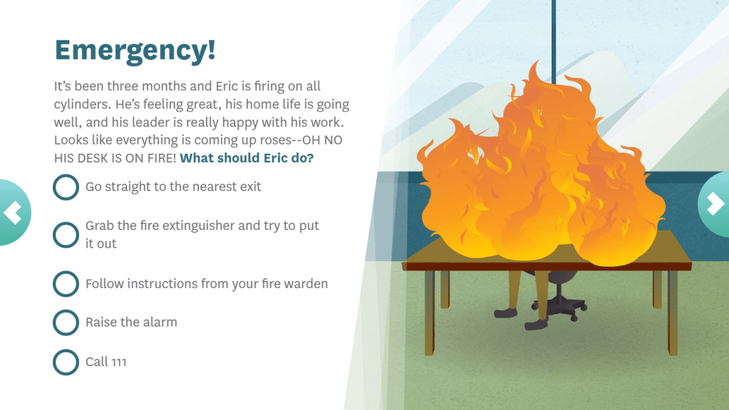Traditional health and safety modules can be quite flawed in their approach; content can be a bit dry and is often aimed at having learners “tick the boxes” rather than think of how health and safety in their work environments applies to them.